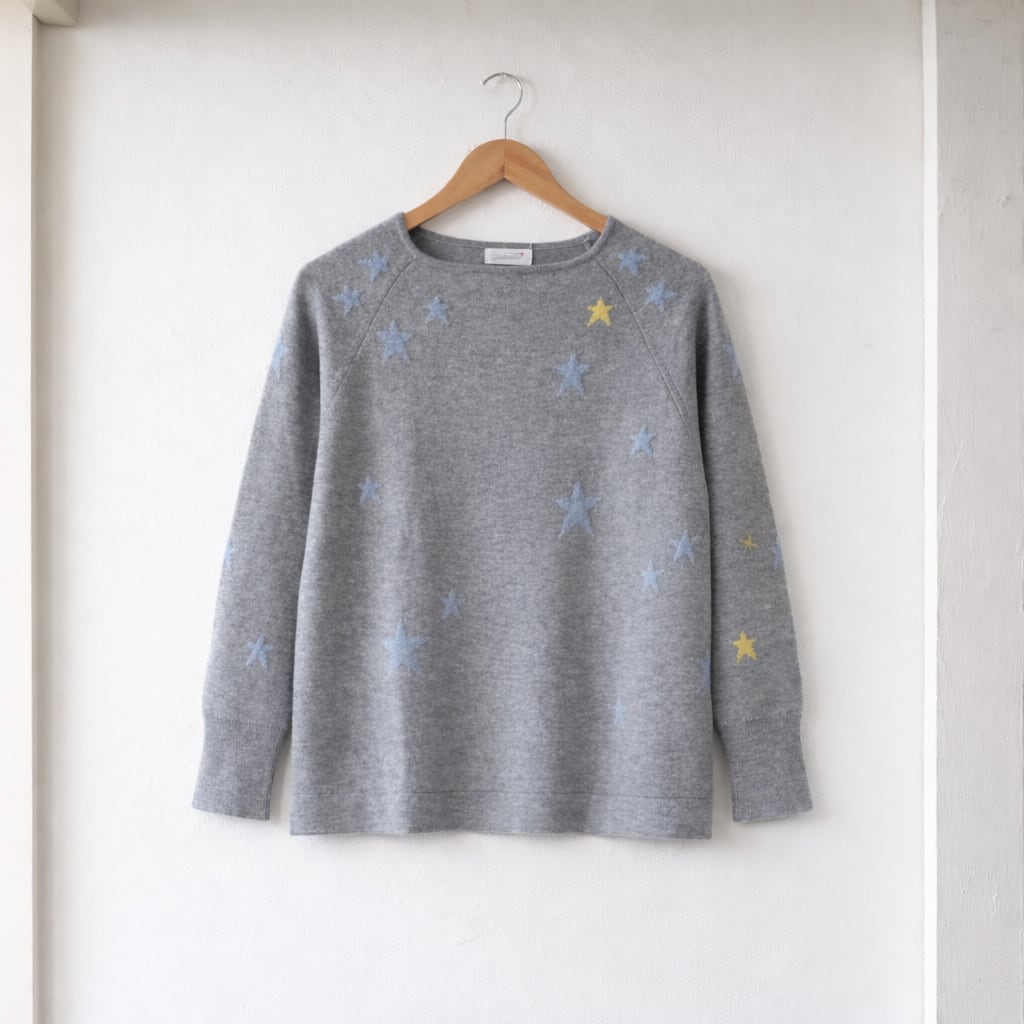 ✴SALE理由✴ ラスト1点 人気の星柄カシミヤセーター。 最後の1点を、オンラインにてご案内いたします。 次回の入荷はありません。 気になっていた方は、この機会にぜひ。 サイズ(単位㎝):身丈62、身幅48、裄丈75 (ニット製品の為、多少のサイズ差がございます) 素材:カシミヤ100% 原産国:モンゴル それぞれに理由のある、特別な一枚を揃えました。 お気に入りを見つけていただけたら嬉しいです。